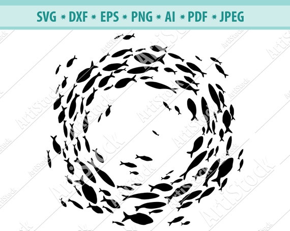 School Of Fish Svg Group Of Fishes Vector Fish Logo Black Etsy
