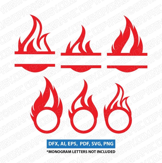 Flame Fire Burn Split Monogram Frame Svg Vector Silhouette Etsy