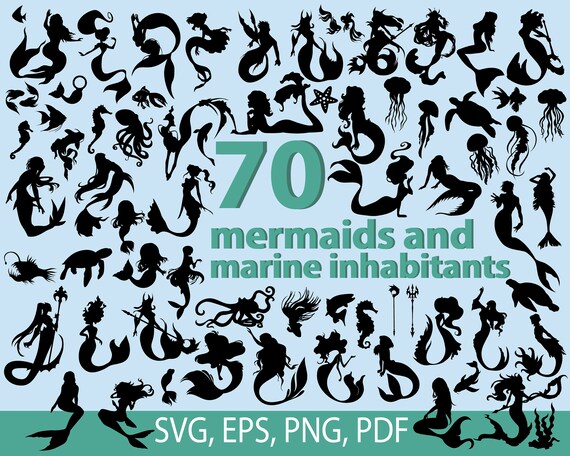 Mermaid Silhouette Svg Marine Inhabitants Svg Party Clipart Etsy