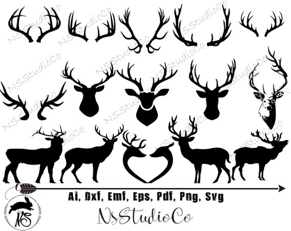 Deer Antler Monogram Clipart Deer Head Silhouette Vector Etsy