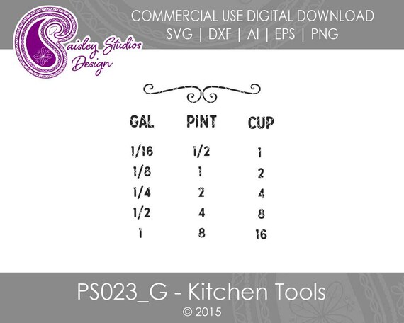 Kitchen Conversions Chart Kitchen Svg Files Kitchen Tools Etsy