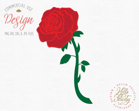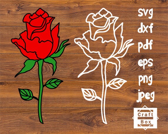 Rose Svg Dxf Red Rose Green Stem With Leaves Svg Rose Etsy
