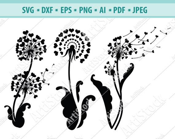 Dandelion With Heart Svg Digital Cut File Dandelion Flower Etsy