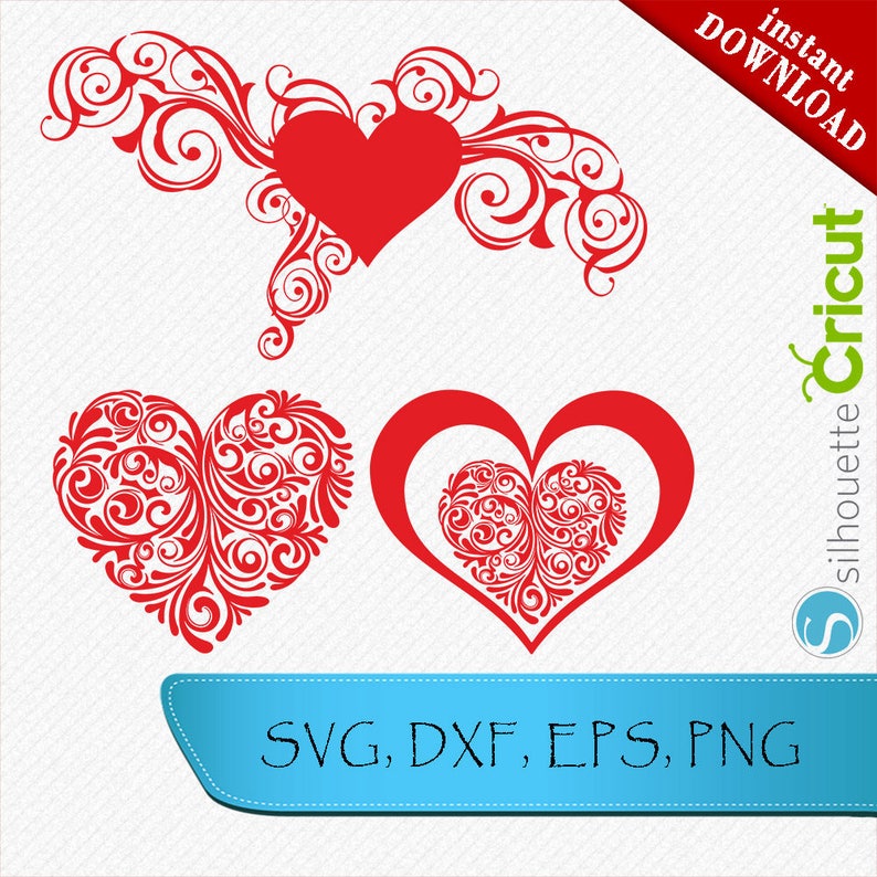 Swirly Heart Svg Dxf Png Digital Download Files For Etsy