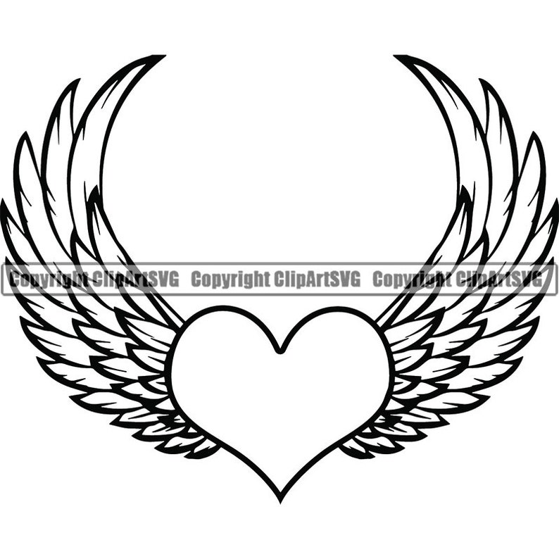 Heart Wings 3 Love Symbol Angel Tattoo Tat Valentines Art Etsy