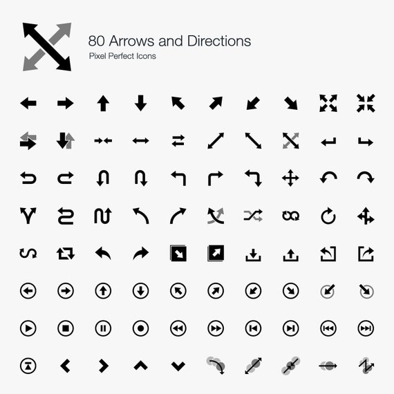 80 Arrows And Directions Set Bundle Icons Signs Symbols Etsy