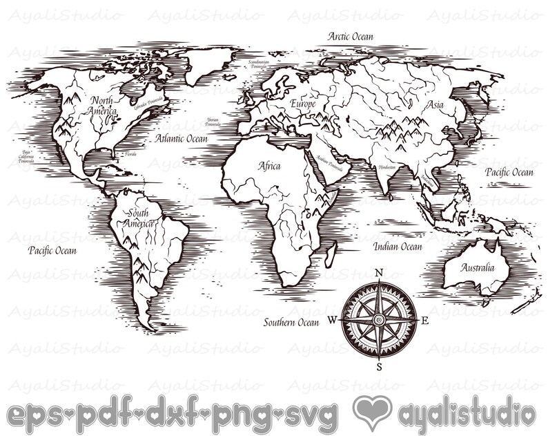 World Map Svgcompass Svg Travel Svg World Map Clipartpng Etsy