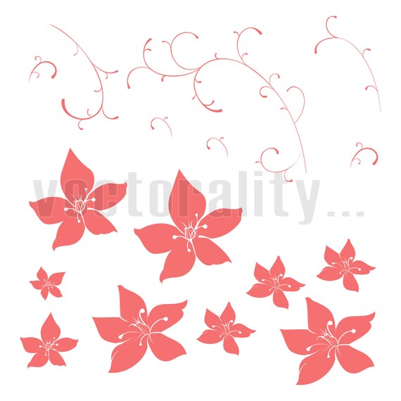 Floral Plant Elements Parts Flowers Buds Vines Pack Vector Art Etsy