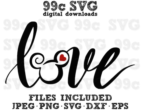 Love Script Mickey Head Word Disney Svg Dxf Png Vector Cut Etsy
