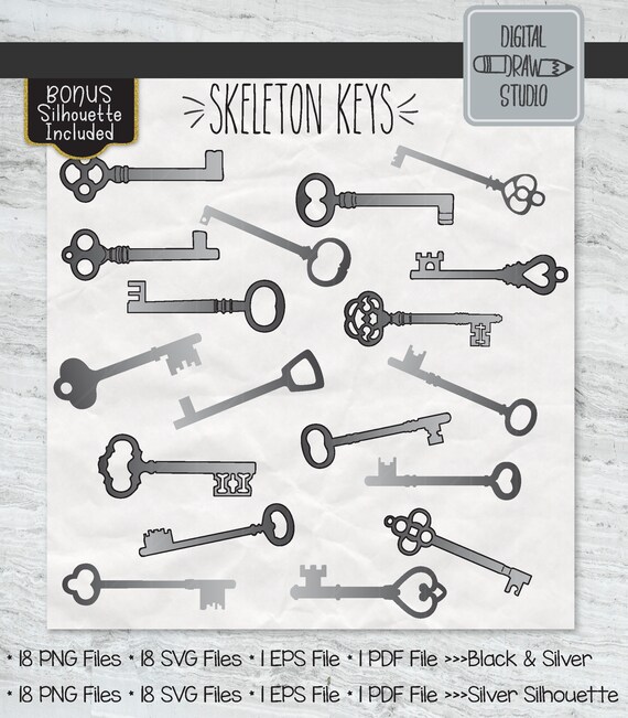 18 Silver Key Clip Art Hand Drawn Victorian Keys Vector Etsy