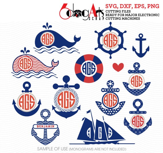 Nautical Monogram Frames Vector Digital Cut Files Svg Dxf Eps Etsy